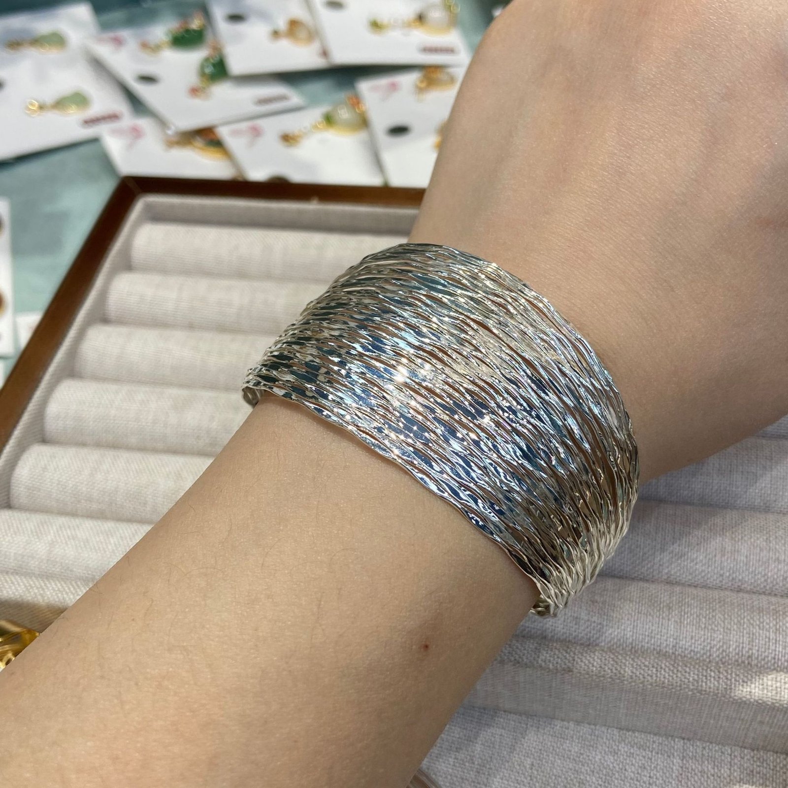 Exaggerated Thick Silver-Plated Women’s Cuff Bracelet – 2025 New Niche High-End Open Wide Bangle Minimalist Style Wristwear