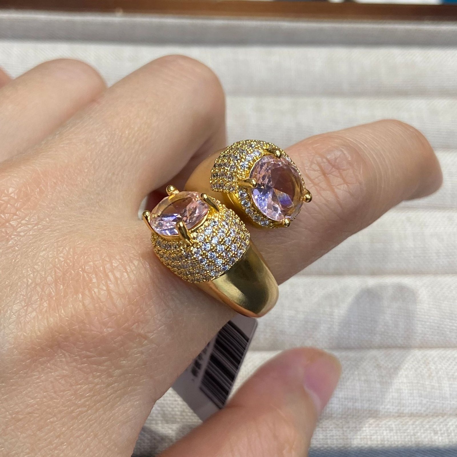 成为第一个“Vintage Gold-Plated Double-Head Open Ring – Blue and Pink Rhinestone Inlay Fully Paved Retro Finger Ring” 的评价者